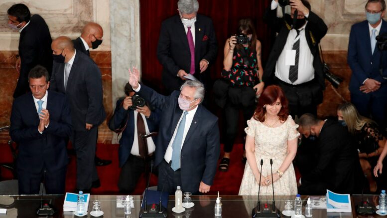 Fernández fue recibido en el Congreso por la presidenta del Senado, la expresidenta de la República Cristina Fernández de Kirchner, desprovista de mascarilla, y el presidente de la Cámara de Diputados, Sergio Massa. Ante un aforo reducido, por precauciones contra la pandemia, el máximo dirigente argentino abogó por la reconciliación política y a la vez cargó contra sus rivales: hubo que interpretar el largo discurso, de casi dos horas, en clave electoral. Una victoria en las elecciones parlamentarias de octubre próximo es considerada fundamental por la mayoría peronista.