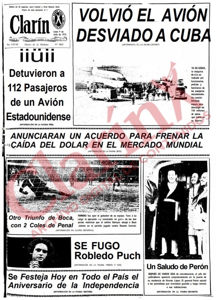 La edición de Clarín del 9 de julio de 1973