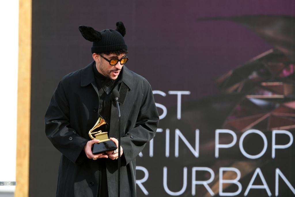 LOS ANGELES, CALIFORNIA – MARCH 14: Bad Bunny accepts the Grammy for Best Latin Pop or Urban Album for ‘YHLQMDLG’ onstage during the 63rd Annual GRAMMY Awards at Los Angeles Convention Center on March 14, 2021 in Los Angeles, California. (Photo by Kevin Winter/Getty Images for The Recording Academy)